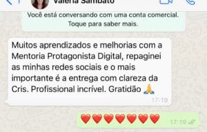 Esta mentorada aprendeu de forma clara e objetiva a se posicionar nas redes sociais.